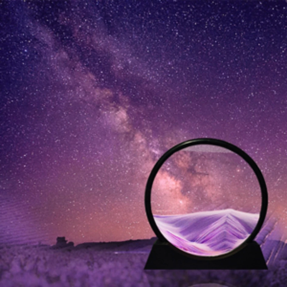 Obraz 3D z ruchomym piaskiem Okrągłe szkło Głębokie morze Piaszczysty krajobraz.